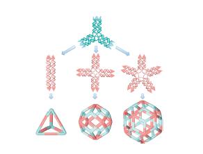 Discrete and symmetric three-dimensional(3D)DNA nanocages have been revoked as excellent candidates for various applications,such as guest component encapsulation and organization(e.g.dye molecules,proteins,inorganic nanoparticles,etc.)to construct new materials and devices.To date,a large variety of DNA nanocages has been synthesized through assembling small individual DNA motifs into predesigned structures in a bottom-up fashion.Most of them rely on the assembly using multiple copies of single type of motifs and a few sophisticated nanostructures have been engineered by co-assembling multi-types of DNA tiles simultaneously.However,the availability of complex DNA nanocages is still limited.Herein,we demonstrate that highly symmetric DNA nanocages consisted of binary DNA point-star motifs can be easily assembled by deliberately engineering the sticky-end interaction between the component building blocks.As such,DNA nanocages with new geometries,including elongated tetrahedron(E-TET),rhombic dodecahedron(R-DOD),and rhombic triacontahedron(R-TRI)are successfully synthesized.Moreover,their design principle,assembly process,and structural features are revealed by polyacryalmide gel electrophoresis(PAGE),atomic force microscope(AFM)imaging,and cryogenic transmission electron microscope imaging(cryo-TEM)associated with single particle reconstruction.