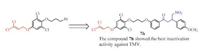 Due to new mechanism of action and ecofriendly characteristics, dicarboxamide insecticides have attracted more and more attentions in modern pest management. A series of 20 dual chiral N-cyano sulfilimines containing two centers (carbon and sulfur) were designed and synthesized. All title compounds were determined by 1H NMR, high-resolution mass spectrometry (HRMS) and optical polarimeter. The preliminary results indicated that some of them exhibited favourable insecticidal activities against oriental armyworm (Pseudaletia separata Walker). These isomers exhibited different impact on activity following the sequence as (Sc, Ss)≥(Sc, Rs), and the rule of title compounds’ activity against oriental armyworm was 3-CF3≥2-CH3-4-Cl >2, 3, 4-trifluro in the anilide moiety. The results indicated that these groups such as 3-CF3, 2-CH3-4-Cl or 2, 3, 4-trifluro were inefficient to replace heptafluoroisopropyl group for high larvicidal activity, which provided some guidance for the further modifications of sulfiliminyl dicarboxamides.