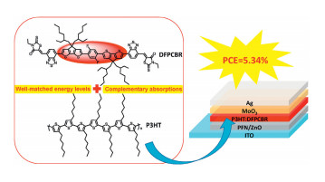 Poly(3-hexylthiophene) (P3HT) is a low-cost polymer donor for organic solar cells (OSCs). However, the P3HT-based OSCs usually give low power conversion efficiencies (PCEs) due to the wide bandgap and the high-lying energy levels of P3HT. To solve this problem, in this work, we design and synthesize a new AD-A type non-fullerene acceptor, DFPCBR, which owns an electron-donating (D) core constructed by linking a 2,5-difluorobenzene ring with two cyclopentadithiophene moieties, and two electronaccepting (A) end-groups of benzo[c] [1,2,5]thiadiazole connected with 3-ethyl-2-thioxothiazolidin-4-one. Because of the strong electron-donating ability and large conjugation effect of D core, DFPCBR shows appropriate energy levels and a narrow bandgap matching well with those of P3HT. Therefore, with P3HT as the donor and DFPCBR as the acceptor, the OSCs possess broad absorption range from 350 nm to 780 nm and the reduced energy loss (Eloss) of 0.79 eV (compared with~1.40 eV for the P3HT:PC61BM device), providing a good PCE of 5.34% with a high open-circuit voltage (VOC) of 0.80 V. Besides, we observe that the photovoltaic performances of these devices are insensitive to the thickness of the active layers:even if the active layer is as thick as 320 nm,~80% of the best PCE is maintained, which is rarely reported for fullerene-free P3HT-based OSCs, suggesting that DFPCBR has the potential application in commercial OSCs in the future.