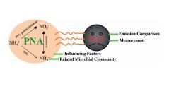 Nitrous oxide (N2O) is one of the significant greenhouse gases, and partial nitritation-anammox (PNA) process emits higher N2O than traditional nitrogen removal processes. N2O production in PNA mainly occurs in three different pathways, i.e., the ammonia oxidizing bacteria (AOB) denitrification, the hydroxylamine (NH2OH) oxidation and heterotrophic denitrifiers denitrification. N2O emission data vary significantly because of the different operational conditions, bioreactor configurations, monitoring systems and quantitative methods. Under the common operational parameter scopes of PNA, N2O emission via NH2OH oxidation dominates at relatively low dissolved oxygen (DO), low inorganic carbon (IC), high pH or low NO2- concentration, while N2O emission via AOB denitrification dominates at relative higher DO, higher IC, lower pH or higher NO2- concentration. AOB are highly enriched while nitriteoxidizing bacteria (NOB) are rarely found in partial nitritation process, and the order Nitrosomonadales of AOB is the dominant group and N2O producer. Anammox bacteria, AOB and certain amount of heterotrophic denitrifying bacteria are observed in the anammox process, the genus Denitratisoma and the heterotrophic denitrifying bacteria in the deep layer of anammox granules are the dominant N2O generation bacteria. In one-stage PNA reactors, anammox bacteria account for a large fraction of the biomass, AOB account for small portion, and NOB account for even less. The microbial community, diversity and N2O producers in one-stage PNA reactors are similar with those in two-stage PNA reactors. The dominant anammox bacteria, AOB and NOB in PNA are the species Candidatus Brocadia, the genera of Nitrotoga, Nitrospira and Nitrobacter, and the genus Nitrosomonas, respectively. The relations between N2O emission pathways and microbial communities need further study in the future.
