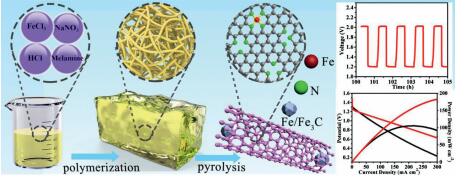 Catalytic oxygen reduction reaction (ORR) and oxygen evolution reaction (OER) have garnered great attention as the key character in metal-air batteries. Herein, we developed a superior nonprecious bifunctional oxygen electrocatalyst, fabricated through spatial confinement of Fe/Fe3C nanocrystals in pyridinic N and Fe-Nx rich carbon nanotubes (Fe/Fe3C-N-CNTs). During ORR, the resultant electrocatalyst exhibits positive onset potential of 1.0 V (vs. RHE), large half-wave potentials of 0.88 V (vs. RHE), which is more positive than Pt/C (0.98 V and 0.83 V, respectively). Remarkably, Fe/Fe3C-N-CNTs exhibits outstanding durability and great methanol tolerance, exceeding Pt/C and most reported nonprecious metal-based oxygen reduction electrocatalysts. Moreover, Fe/Fe3C-N-CNTs show a markedly low potential at j =10 mA/cm2, small Tafel slopes and extremely high stability for OER. Impressively, the Fe/Fe3C-N-CNTs-based Zn-air batteries demonstrate high power density of 183 mW/cm2 and robust charge/discharge stability. It is revealed that the spatial confinement effect can impede the aggregation and corrosion of Fe/Fe3C nanocrystals. Meanwhile, Fe/Fe3C and Fe-Nx play synergistic effect on boosting the ORR/OER activity, which provides an important guideline for construction of inexpensive nonprecious metal-carbon hybrid nanomaterials.