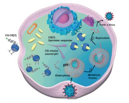 The wide-spreading SARS-CoV-2 virus has put the world into boiling water for more than a year, however pharmacological therapies to act effectively against coronavirus disease 2019 (COVID-19) remain elusive. Chloroquine (CQ), an antimalarial drug, was found to exhibit promising antiviral activity in vitro and in vivo at a high dosage, thus CQ was approved by the FDA for the emergency use authorization (EUA) in the fight against COVID-19 in the US, but later was revoked the EUA status due to the severe clinical toxicity. Herein, we show that supramolecular formulation of CQ by a macrocyclic host, curcurbit[7]uril (CB[7]), reduced its non-specific toxicity and improved its antiviral activity against coronavirus, working in synergy with CB[7]. CB[7] was found to form 1:1 host-guest complexes with CQ, with a binding constant of ~104 L/mol. The CQ-CB[7] formulation decreased the cytotoxicity of CQ against Vero E6 and L-02 cell lines. In particular, the cytotoxicity of CQ (60 μmol/L) against both Vero E6 cell line and L-02 cell lines was completely inhibited in the presence of 300 μmol/L and 600 μmol/L CB[7], respectively. Furthermore, the CB[7] alone showed astonishing antiviral activity in SARS-CoV-2 infected Vero E6 cells and mouse hepatitis virus strain A59 (MHV-A59) infected N2A cells, and synergistically improved the antiviral activity of CQ-CB[7], suggesting that CB[7]-based CQ formulation has a great potential as a safe and effective antiviral agent against SARS-CoV-2 and other coronavirus.