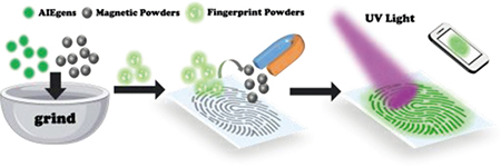 Among the emitters in powder dusting to visualize the latent fingerprints (LFPs), aggregation-induced emission luminogens (AIEgens) are well employed for their high brightness and resistance to photo-bleaching. However, the serious background interference and low resolution still limit their fast development. Therefore, to further enhance the signal-to-noise ratio in LFPs imaging, especially to improve the analysis for level 3 details, donor-acceptor (D-A) typed AIEgens of DTPA-2,3-P, DTPA-2,5-P and DTPA-2,6-P are designed here. It is observed that strong emission covering from 450 nm to 650 nm can be obtained for all these molecules, especially that a high PLQY value of 10.06% in solids is achieved in DTPA-2,3-P. This is much higher than that of the other two cases (0.80% and 0.51%). By utilizing the DTPA-2,3-P in powder dusting, fluorescence imaging of LFPs can be clearly captured on both smooth and rough substrates. Moreover, confocal laser scanning microscope (CLSM) enables us to achieve high-resolution LFPs imaging in both 2D and 3D views, providing more detailed information of fingerprints pores in width, distance, distribution, and shapes. The results here demonstrate that highly emissive AIEgen of DTPA-2,3-P could be an excellent candidate for the visualization of fingerprints, thus providing the potential application in criminal investigation in the future.