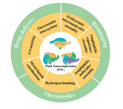 The application of nanotechnologies in formulation has significantly promoted the development of modern medical and pharmacological science, especially for nanoparticle-based drug delivery, bioimaging, and theranostics. The advancement of engineering particle design and fabrication is largely supported by a better understanding of how their apparent characteristics (e.g., size and size distribution, surface morphology, colloidal stability, chemical composition) influence their in vivo biological performance, which raises an urgent need for practical nanoformulation methods. Based on turbulent flow mixing and the self-assembly of molecules in fluids, flash technologies emerged as effective bottom-up fabrication strategies for effective nanoformulation. Among the flash technology family, flash nanocomplexation (FNC) is considered a novel and promising candidate that can promote and optimize formulation processes in a precise spatiotemporal manner, thus obtaining excellent fabrication efficiency, reproducibility and expandability. This review presents an overview of recent advances in fabricating drug-delivery nanoparticles using FNC platforms. Firstly, brief introductions to the basic principles of FNC technology were carried out, followed by descriptions of turbulent microvolume mixers that have significantly promoted the efficiency of FNC-based fabrications. Applications of real formulation cases were then categorized according to the self-assembly-driven interactions (including electrostatic interaction, coordination interaction, hydrogen bonding and hydrophobic interaction) and discussed to reveal the progressiveness of fabricating nanoparticles and discuss how its flexibility will provide advances and replenish the philosophy of nanomedicine formulation. In the end, the commercial potential, current limitations, and prospects of FNC technology for nanoformulation will be summarized and discussed.