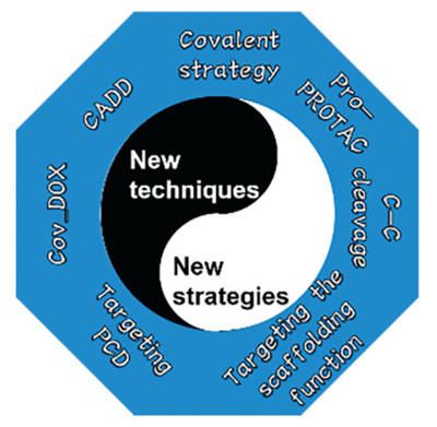 In the realm of drug discovery, recent advancements have paved the way for innovative approaches and methodologies. This comprehensive review encapsulates six distinct yet interrelated mini-reviews, each shedding light on novel strategies in drug development. (a) The resurgence of covalent drugs is highlighted, focusing on the targeted covalent inhibitors (TCIs) and their role in enhancing selectivity and affinity. (b) The potential of the quantum mechanics-based computational aid drug design (CADD) tool, Cov_DOX, is introduced for predicting protein-covalent ligand binding structures and affinities. (c) The scaffolding function of proteins is proposed as a new avenue for drug design, with a focus on modulating protein-protein interactions through small molecules and proteolysis targeting chimeras (PROTACs). (d) The concept of pro-PROTACs is explored as a promising strategy for cancer therapy, combining the principles of prodrugs and PROTACs to enhance specificity and reduce toxicity. (e) The design of prodrugs through carbon-carbon bond cleavage is discussed, offering a new perspective for the activation of drugs with limited modifiable functional groups. (f) The targeting of programmed cell death pathways in cancer therapies with small molecules is reviewed, emphasizing the induction of autophagy-dependent cell death, ferroptosis, and cuproptosis. These insights collectively contribute to a deeper understanding of the dynamic landscape of drug discovery.