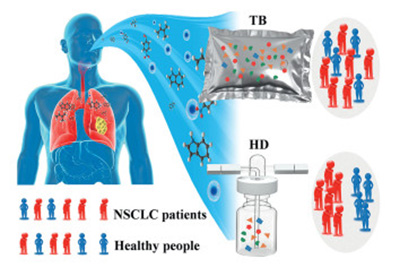 Breath analysis can be used to diagnose diseases non-invasively. Accurate measurement of volatolomics is critical for breath analysis to be a gold standard. Tedlar bags (TB) are often used to collect breath samples, but they emit contaminants that affect accuracy. This issue was overlooked in previous studies. We found contamination issues with TB (e.g., siloxanes and aromatic impurities) that affect the identification of volatile organic compounds (VOCs) due to impurities. Then, home-designed equipment (HD) made with poly-tetrafluoride (PTFE) and quartz glass for breath collection was developed and employed in clinical trials. 15 healthy individuals and 32 non-small cell lung cancer (NSCLC) patients at IA stage participated in this study. 610 VOCs can be collected through TB, which is less than HD (1109 VOCs), demonstrating that the inner wall of the TB easily adsorbs VOCs, leading to decreased detection concentrations. Otherwise, utilizing orthogonal partial least squares discriminant analysis (OPLS-DA), we identified chemical markers with significant discriminatory power (VIP > 1.5, P < 0.05). The HD method identified 12 target VOCs, surpassing the 3 target VOCs discerned by the TB method. A model combined with a machine learning algorithm for distinguishing early-stage lung cancer patients was established based on biomarkers, which were selected based on OPLS-DA. The results showed strong predictive capabilities for the HD-based model. It indicated that 12 biomarkers derived from the HD model were more effective in distinguishing NSCLC patients, with an AUC value of 0.92, compared to the AUC value of 0.5 from 3 markers obtained from the TB model. The sensitivity and specificity in the confusion matrix reached 100% and 80% for the HD test, but TB test reached only 40% and 60%. This work demonstrated that optimizing and standardizing VOCs collection methodology from breath of lung cancer patients is essential to identify actual volatiles, which could promote disease volatolomics worldwide.