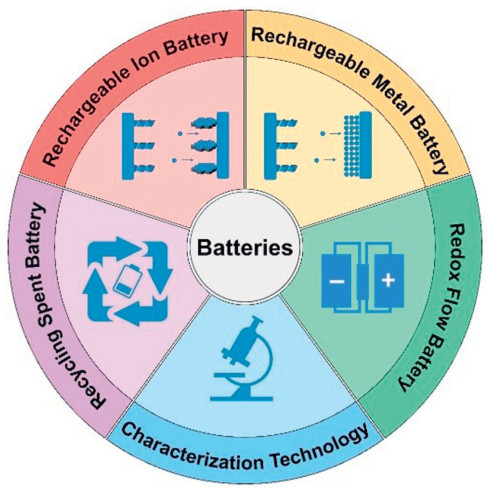 Energy storage plays a critical role in sustainable development, with secondary batteries serving as vital technologies for efficient energy conversion and utilization. This review provides a comprehensive summary of recent advancements across various battery systems, including lithium-ion, sodium-ion, potassium-ion, and multivalent metal-ion batteries such as magnesium, zinc, calcium, and aluminum. Emerging technologies, including dual-ion, redox flow, and anion batteries, are also discussed. Particular attention is given to alkali metal rechargeable systems, such as lithium-sulfur, lithium-air, sodium-sulfur, sodium-selenium, potassium-sulfur, potassium-selenium, potassium-air, and zinc-air batteries, which have shown significant promise for high-energy applications. The optimization of key components—cathodes, anodes, electrolytes, and interfaces—is extensively analyzed, supported by advanced characterization techniques like time-of-flight secondary ion mass spectrometry (TOF-SIMS), synchrotron radiation, nuclear magnetic resonance (NMR), and in-situ spectroscopy. Moreover, sustainable strategies for recycling spent batteries, including pyrometallurgy, hydrometallurgy, and direct recycling, are critically evaluated to mitigate environmental impacts and resource scarcity. This review not only highlights the latest technological breakthroughs but also identifies key challenges in reaction mechanisms, material design, system integration, and waste battery recycling, and presents a roadmap for advancing high-performance and sustainable battery technologies.